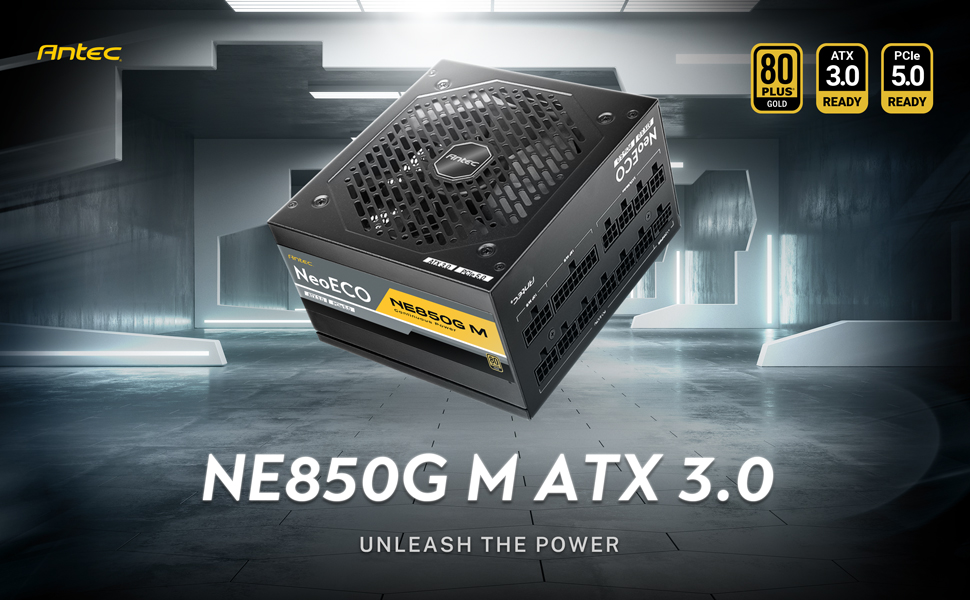 Antec NeoECO, NE850G M ATX3.0, 850W Full Modular PSU, 80 Plus Gold Certified, PCIE 5.0 Support, PhaseWave Design, Japanese Caps, Zero RPM Manager, Silent 120mm Fan, 10-Year Warranty
