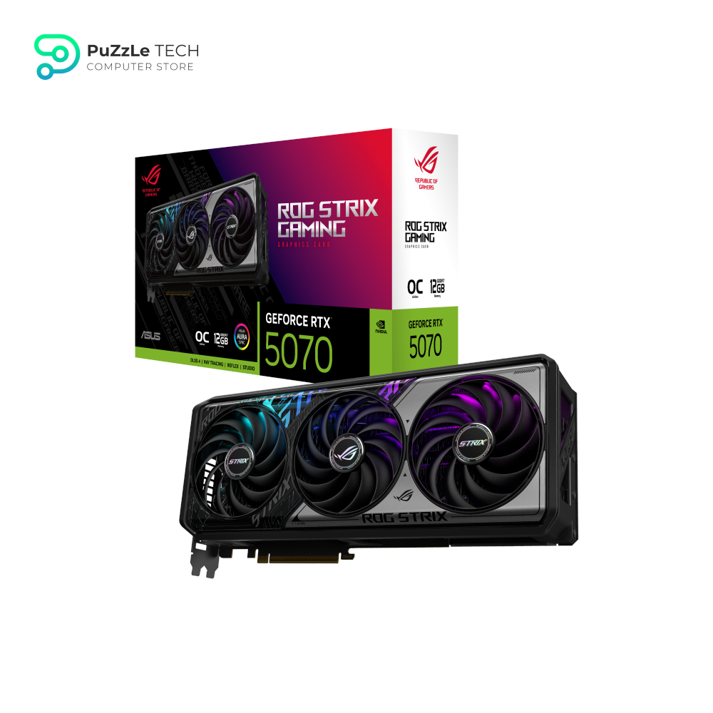 The ROG Strix RTX 5070 OC Edition delivers 5% higher clock speeds out of the box compared to reference designs, powered by 12GB of 21Gbps GDDR7 memory. Featuring triple Axial-Tech fans with 0dB technology and MaxContact heatpipe cooling, this GPU is engineered for 4K gaming and content creation.