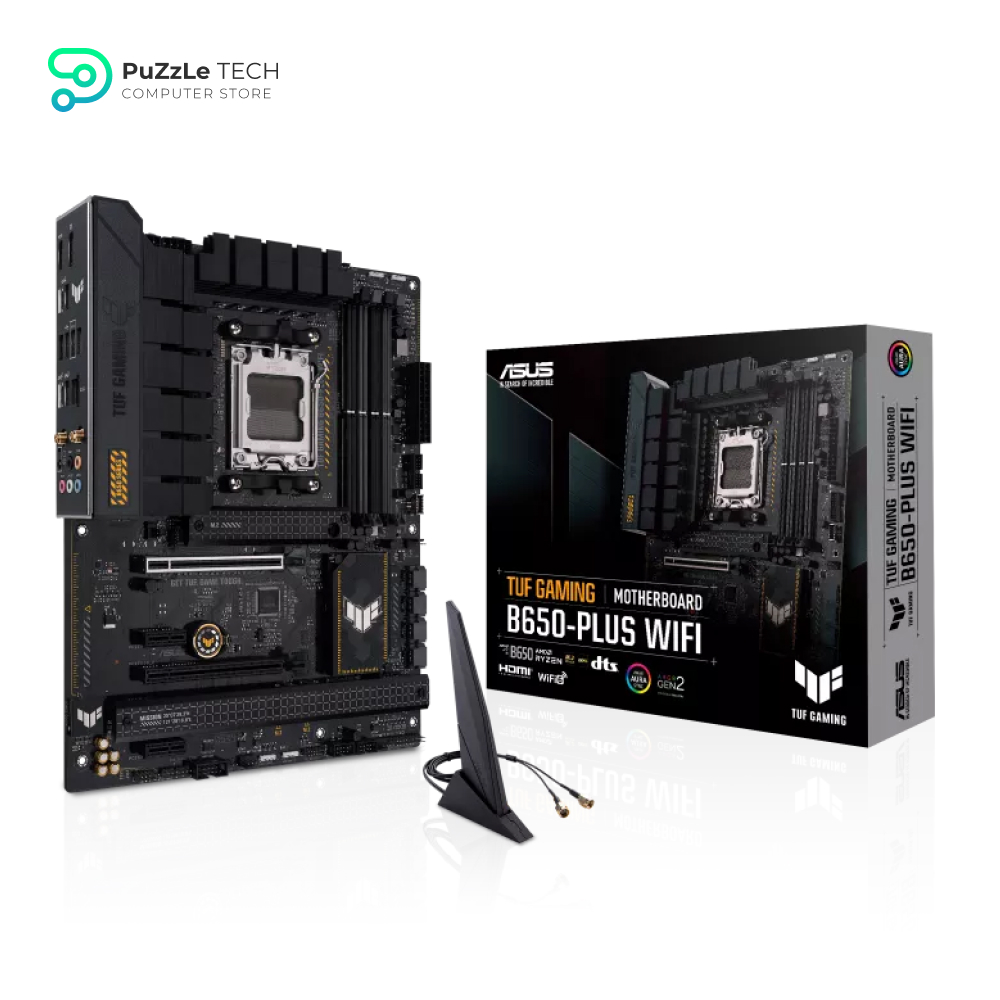 The TUF GAMING B650-PLUS WIFI DDR5 delivers military-grade durability for Ryzen 7000/8000 series CPUs, featuring 12+2 power stages, DDR5 6400MHz+(OC), and PCIe 5.0 support. With WiFi 6, dual M.2 slots, and 2.5Gb Ethernet, this ATX motherboard is built for gamers who demand both performance and reliability.
