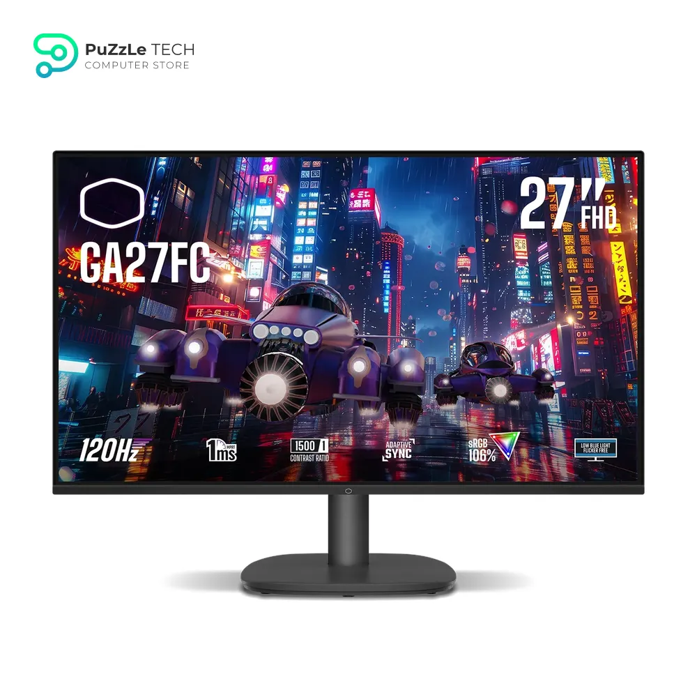 Experience immersive visuals with the Cooler Master CMI-GA27FC. This 27-inch FHD monitor combines a vibrant IPS panel for stunning color accuracy with a smooth 120Hz refresh rate. Featuring Adaptive Sync technology to eliminate screen tearing, it delivers a fluid, responsive gaming experience in a sleek, modern package.