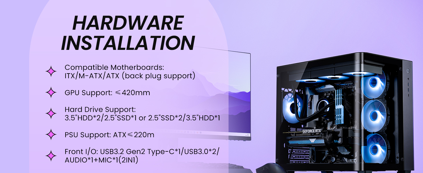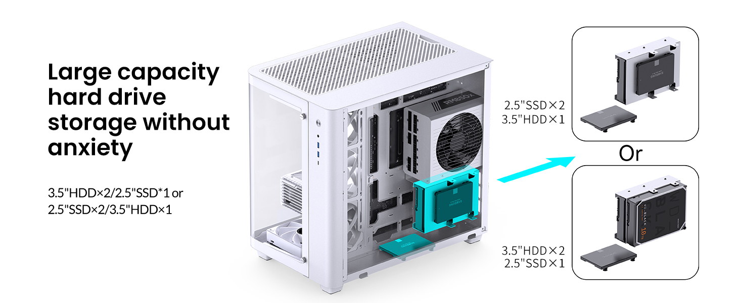 JONSBO TK-3 White One-Piece Curved Glass ATX Mid Tower Pc Case - One-Piece Curved Glass - SP BTF MB/Dual 360 AIO/ATX PSU/40Series GPU - with 10 Fan Positions - 270 Degree Side View Display White Chassis