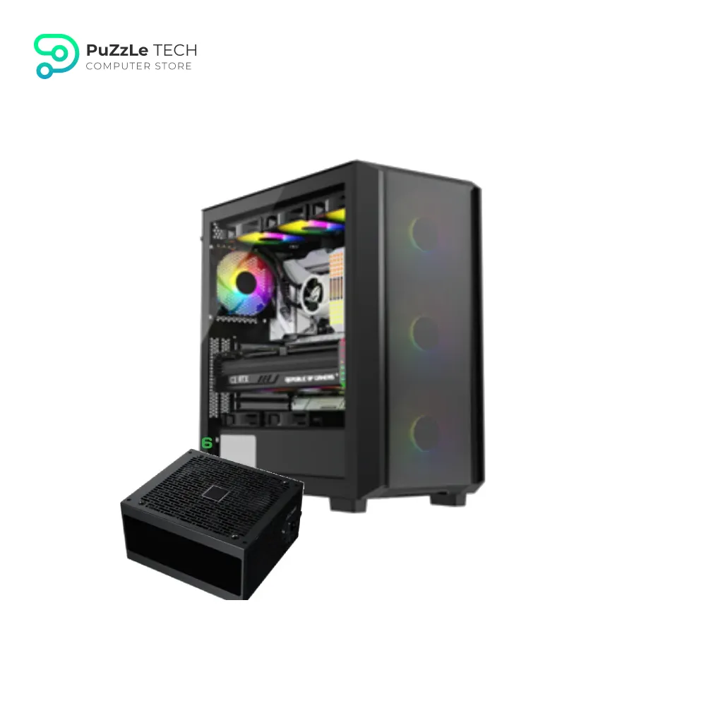 The VELOX MAX ARGB bundle combines a high-airflow chassis with a reliable 850W 80 Plus Bronze ARGB power supply, offering a complete foundation for your next build. Featuring three pre-installed 120mm ARGB fans, a tempered glass side panel, and synchronized lighting effects, this package delivers exceptional performance and stunning visuals right out of the box.